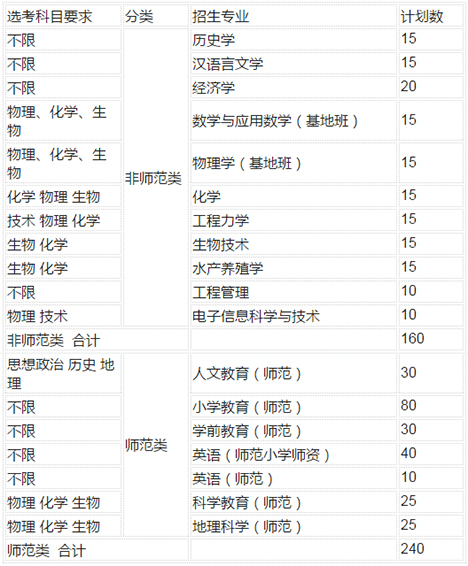 2017年总计划数为400名,其中非师范类160,师范类240。具体招生专业如下: