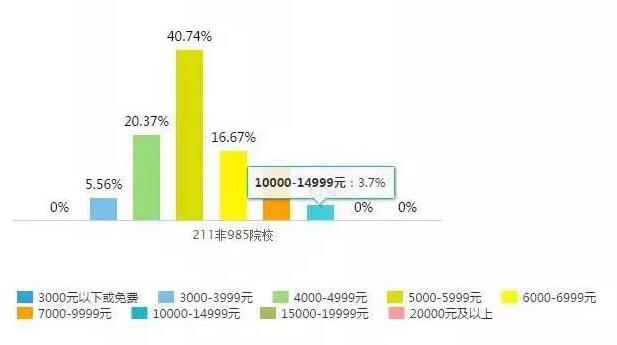 985院校的平均学费以7000-9999元的人数最多,但基本没有学费低于4000元或高于15000元的情况。