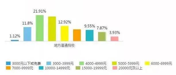 而普通本科院校的学费水平则范围很广,从4000元以下到20000元以上都有分布。