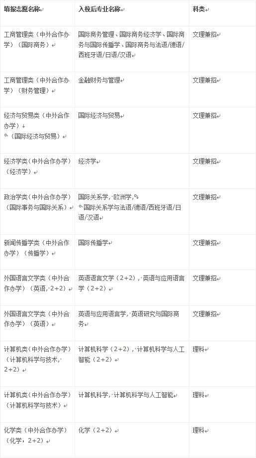 宁波诺丁汉大学按大类招生,招生类别仅供填报志愿使用,具体招生专业以括号内专业名称为准。一部分专业提供2+2模式,即前两年在宁波诺丁汉大学就读,后两年在英国诺丁汉大学就读。部分专业由于受人数限制,不对全部省市开放,详细信息请参看招生网。
