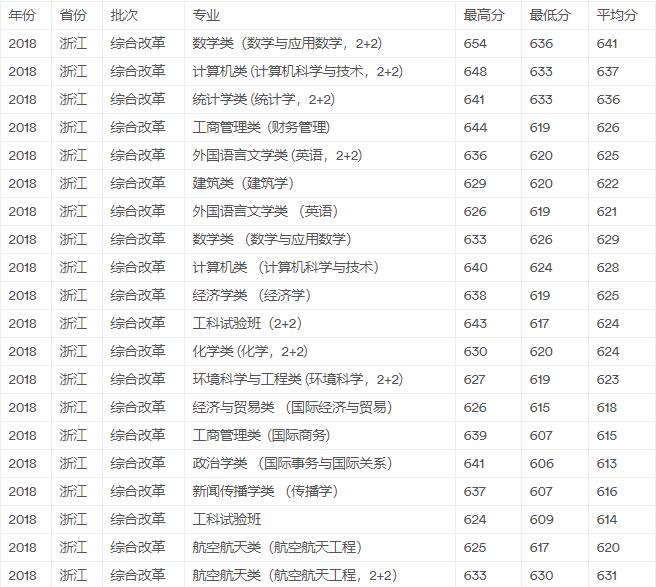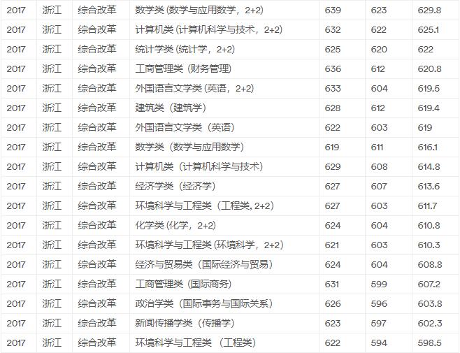 2017、18年浙江省三一专业录取分数