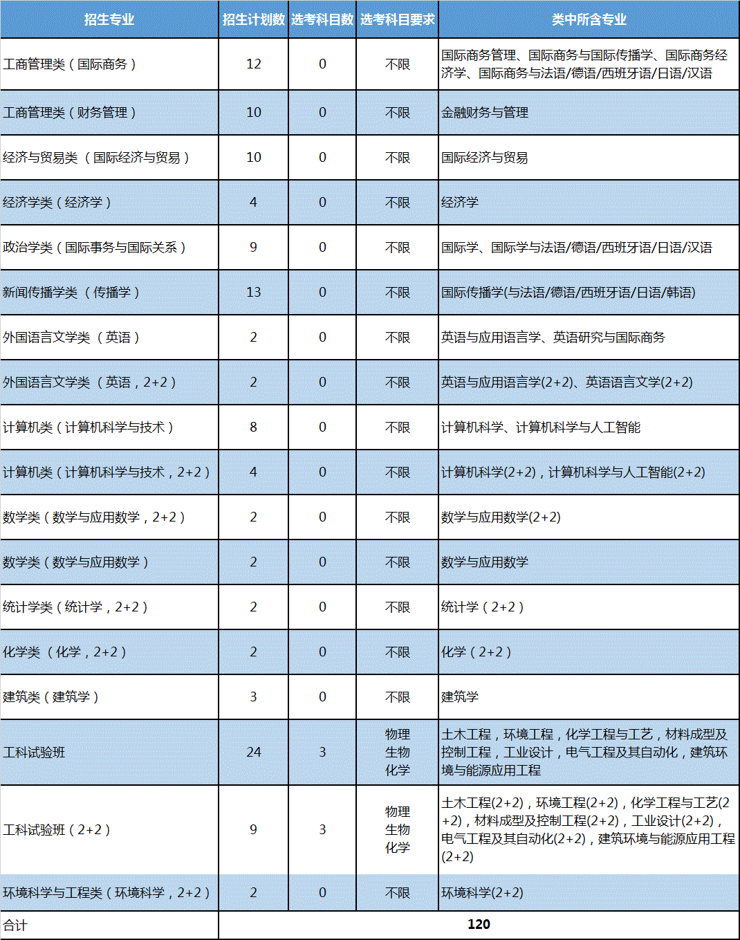 2--按大类招生,三一招生总计划120名