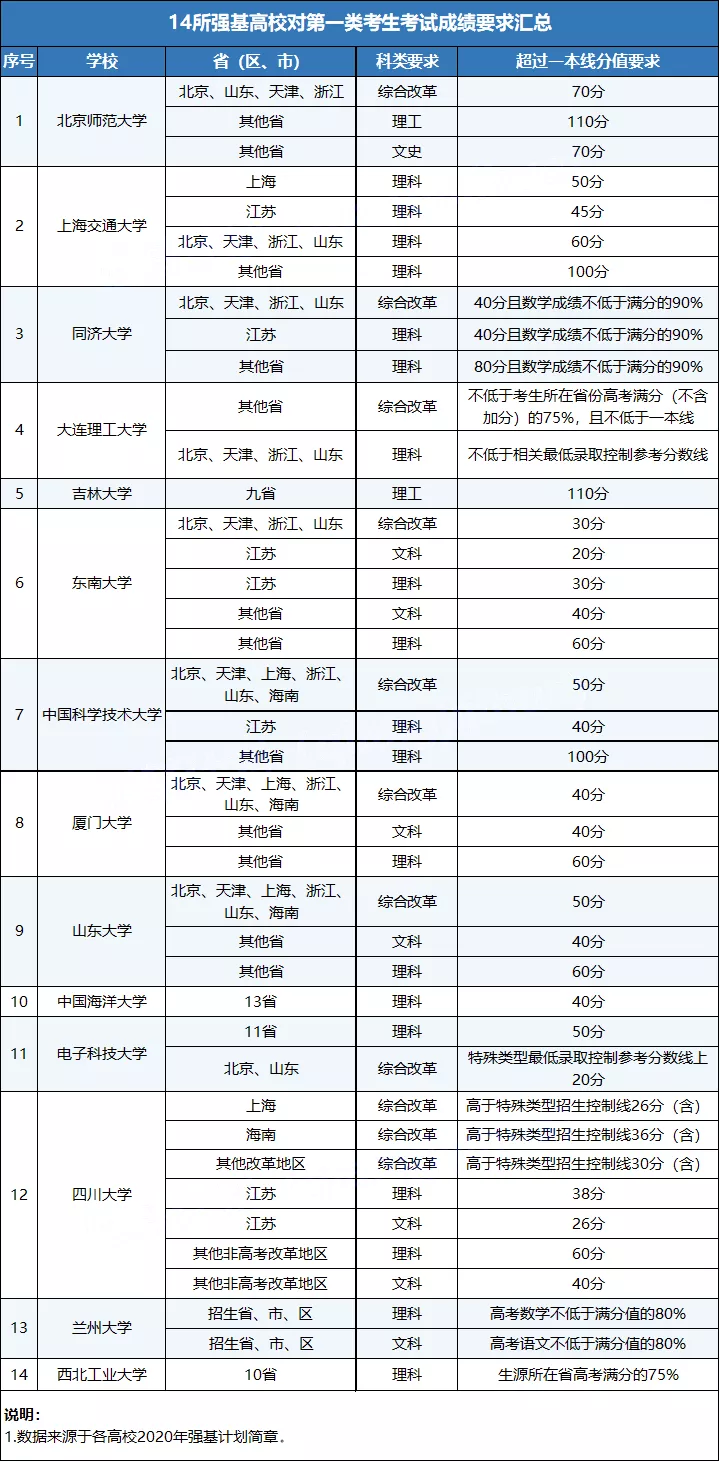 一、14所强基高校对第一类考生的高考分数有硬性要求
