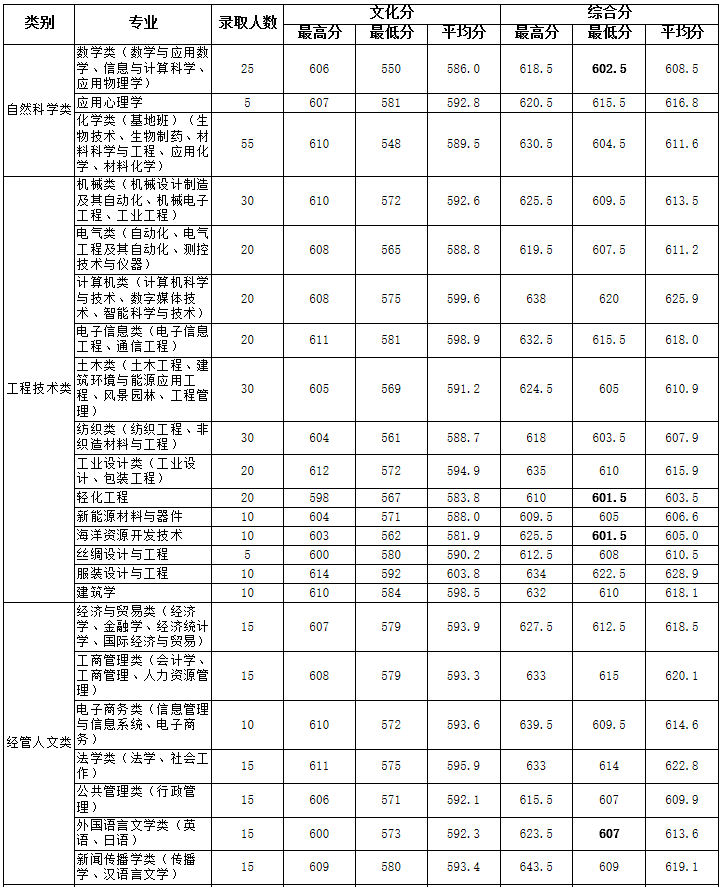 附:浙江理工大学2018年三位一体综合评价招生录取分数线