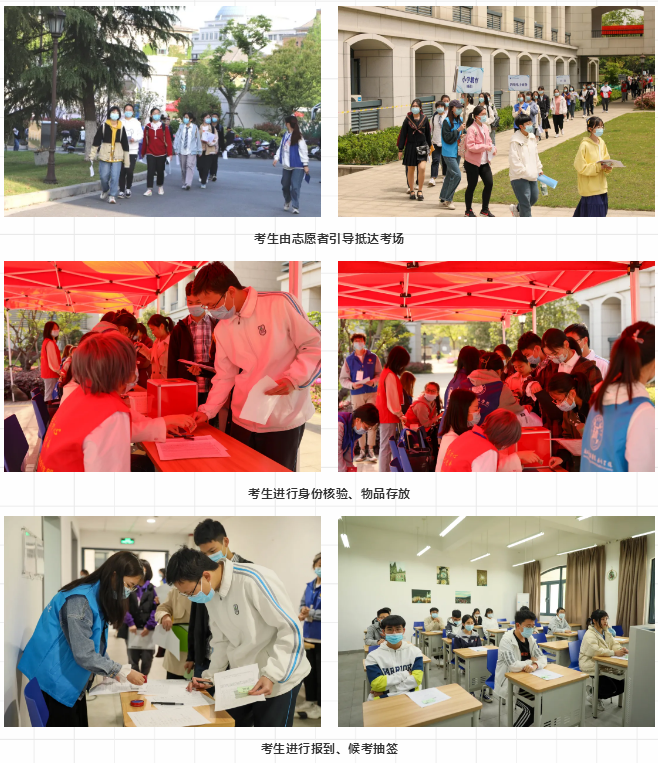 同时,为落实疫情防控相关要求,优化流程,提高效率,采用网上抽签的报到方式,考生只需面试当天到校,通过两次测温,安检门检测和身份识别仪确保安全。同时,学校还设立了临时医疗站和隔离考场,配备消毒和防疫物资。