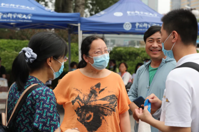 2019级国科大本科生宋京舟,是两年前通过综合评价选拔的方式录取的北京籍考生,如今作为学生志愿者出现在综评引导工作现场,“看到今天的考生,仿佛看到了曾经的自己。”宋京舟说,“在国科大,我认识了很多学术水平很高但为人非常真诚低调的老师,他们聊起自己的研究方向,眼里都会闪着光;我也结识了很多愿意深入讨论课业问题的同学与好友,我渐渐喜欢上科研这条路,喜欢静心学习科学的快乐。”宋京舟最后祝愿各位考生,能够在九月如期如愿走入国科大静谧的校园。