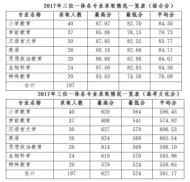 2017年浙师大“三位一体”各专业录取综合分和高考文化分情况如下: