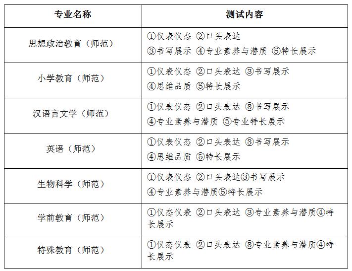 浙师大从2017年开始,三位一体只能填报一个专业,且每个专业的面试内容不同。面试主要测试考生的师范素养和专业素养,师范素养主要是考察考生适不适合从事教师职业,看看考生是否适教,是否乐教;专业素养主要是考察考生是否适合就读所报考的专业,学科性向、专业素养好不好,专业潜质有没有。各专业具体测试内容如下,考生们可在考前做有针对性的准备。