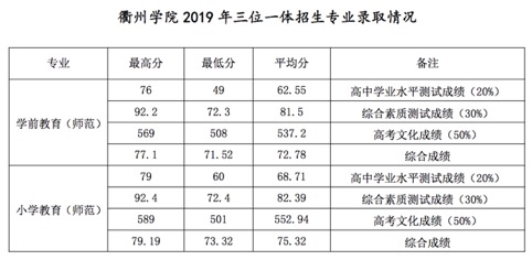 最后,我们一起看一看衢州学院三位一体录取情况如何,以2019年情况为例。