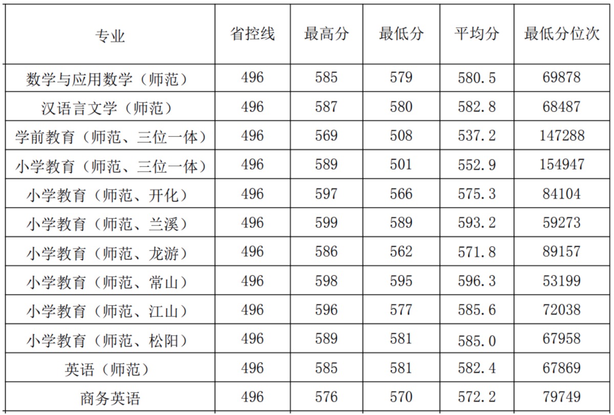 同样是小学教育师范专业,走三位一体招生路径录取的学生高考成绩平均分会比普通类考生低20-40分,高考最低分位次最多相差了近1万名,因此小编建议大家要积极报考衢州学院的三位一体招生,对想要从事小学和学前教育的考生们来说,三位一体政策实在是太友好了。