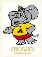 第13届亚运会的吉祥物是一只名叫'猜裕'的大象。“猜裕”是泰国人表示快乐、幸福和庆祝胜利时最常用的语气词。大象身着黄色短衫、红色运裤,胸前印有本届亚运会标志“A”字样。“A”既代表“Asian(亚洲)”和“Athlete(运动员)”,又很像泰国传统建筑的屋顶。