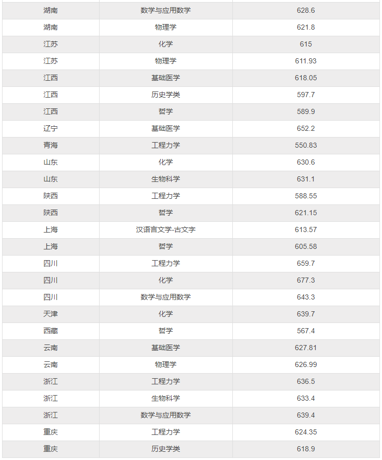 四川省算得上是特殊类型招生的内卷大省,无论是强基计划还是国家专项,报考人数都非常多,因此,强基录取分数不会与统招线差多少,甚至可能出现比统招线更高的情况。四川大学对报考强基学生的高考成绩要求比较严格,一般高考成绩需要超过一本线/特殊类型最低录取控制分数线至少30分,2020年川大强基录取最低分为666分,比南开、北理工、东南大学还高。