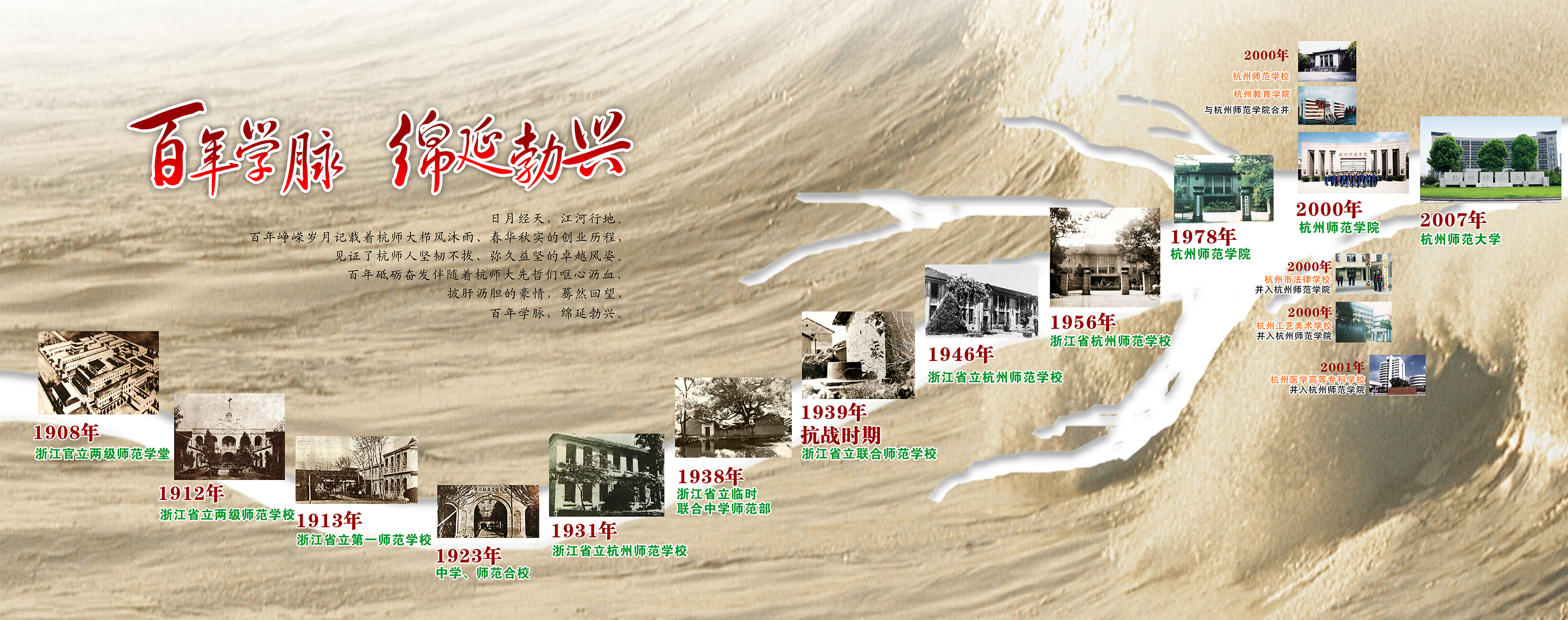 杭州师范大学坐落于风景秀丽的国家历史文化名城杭州。学校的前身可追溯到创建于1908年的浙江官立两级师范学堂,是全国建立最早的六大高等师范学堂之一。1978年经国务院批准建立杭州师范学院,2000年前后,杭州教育学院、杭州医学高等专科学校等五校相继并入,2007年学校更名为杭州师范大学。