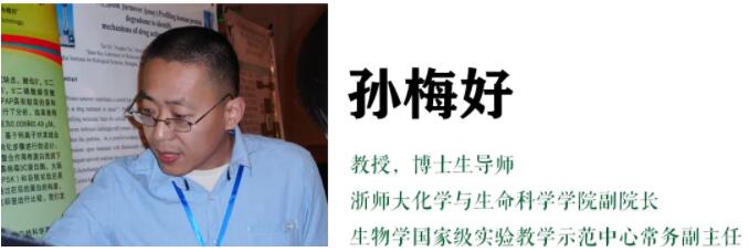 孙梅好,教授,博士生导师,浙江师范大学化学与生命科学学院副院长,生物学国家级实验教学示范中心常务副主任。1996年本科毕业于山东师范大学生物系,2002年博士毕业于中科院上海植物生理生态研究所,2002年至2008年在美国爱因斯坦医学院生物化学系、微生物与免疫系任博士后、研究助理,2008年至今任教于浙江师范大学化学与生命科学学院。2009年入选浙江省“151”人才工程第三层次,2013年入选浙江省高校中青年学科带头人。学术兼职包括浙江省第五届初中科学教学分会理事,省教育学会中学科学教学分会教师教育工作委员会主任,省植物生理与植物分子生物学学会理事兼教学与科普委员会主任、省生物化学与分子生物学学会理事、浙江清华长三角研究院浙江省应用酶学重点实验室学术委员会委员等。研究方向为生物化学与分子生物学,主要利用化学、生物的技术方法,研究生物大分子的结构与功能。主持国家自然科学基金项目2项、省部级科研项目4项,在Journal of Biological Chemistry, Biochemistry等国内外学术刊物上发表论文二十余篇。