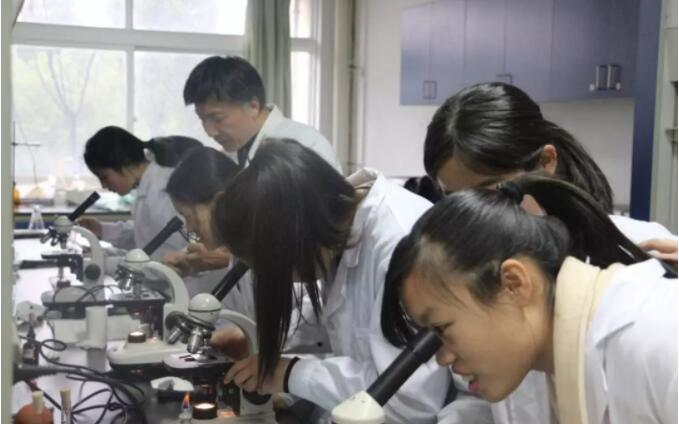 学生进行显微镜观察实验