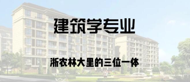 建筑学学科是浙江农林大学人居环境学科群的三个主干学科之一,源自1985年成立的园林建筑教研室,2006年设立建筑学专业并开始招生,列为浙江省第一批次招生专业;2011年被国务院学位办授予建筑学一级学科,是浙江省属院校中首个获批的建筑学一级学科硕士点。有建筑学(五年制)一个本科专业,在校本科生300名;学科现有建筑设计及其理论、建筑技术科学两个二级学科;学科与日本北九州市立大学国际环境工学部建筑学科建立长期稳定的合作关系。