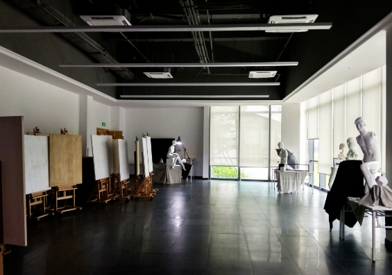 一间绘画工作室,应用于素描与绘画基础课程;一间摄影工作室应用于摄影课程;一间3D设计雕刻工作室,应用于3D设计基础课程。