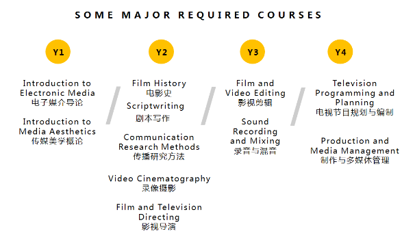 传播学(影视学)入校后的专业名称为影视学专业。影视学专业是文化与创意学部中开设的其中一个专业。其英文缩写CTV不仅对应了专业全称,也代表了创意(Creativity)、技术(Technique)以及视野(Vision)。