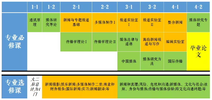 媒体与传播专业要求学生完成以下16门专业必修课