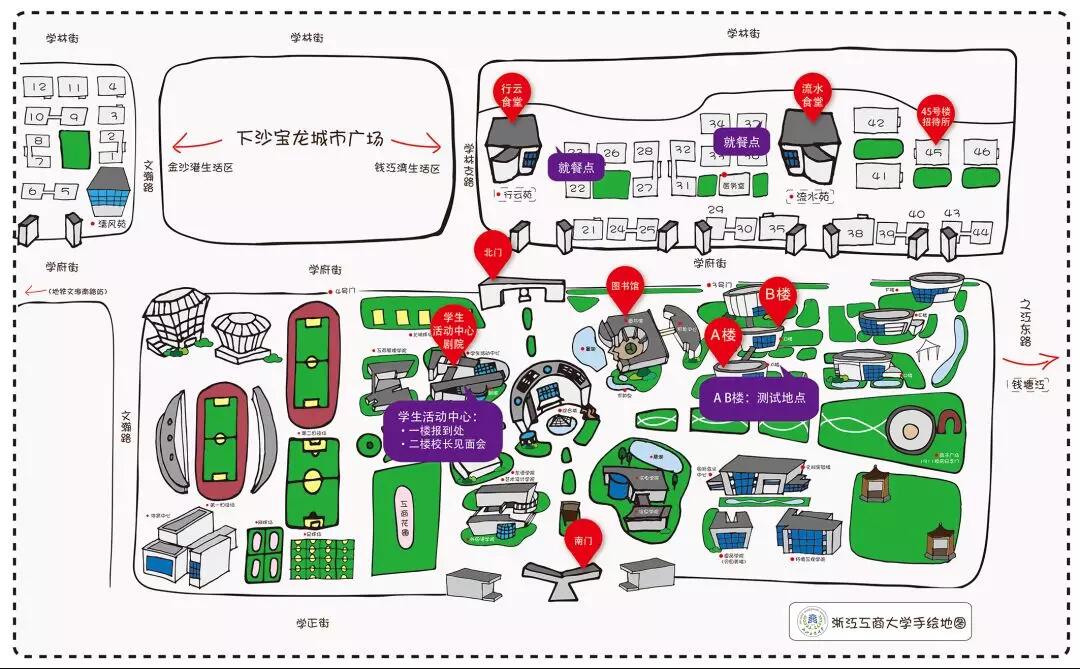 3、外地自驾车报到的考生,可在杭州绕城下沙出口、下沙东出口下高速,再前往浙江工商大学。