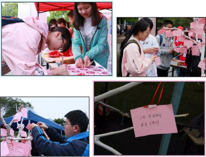 参与此次活动的学生志愿者达300人,“红马甲”们冒雨在校区里做好引导、咨询等工作;学校还安排了精彩的微舞台,让处在高考冲刺环节的学生放松心情。