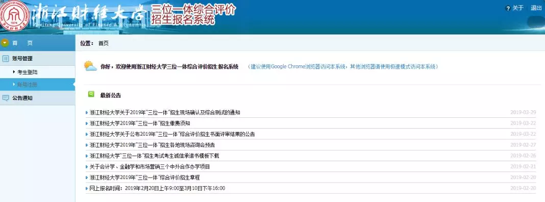 考生可通过我校“三位一体”报名系统(http://swyt.zufe.edu.cn/)