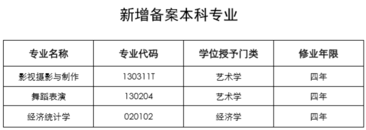 近日,教育部公布2019年度普通高等学校本科专业备案和审批结果,我校申报的影视摄影与制作、舞蹈表演、经济统计学三个本科专业成功获批。