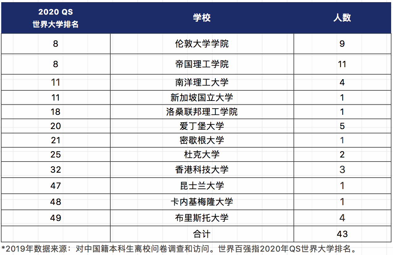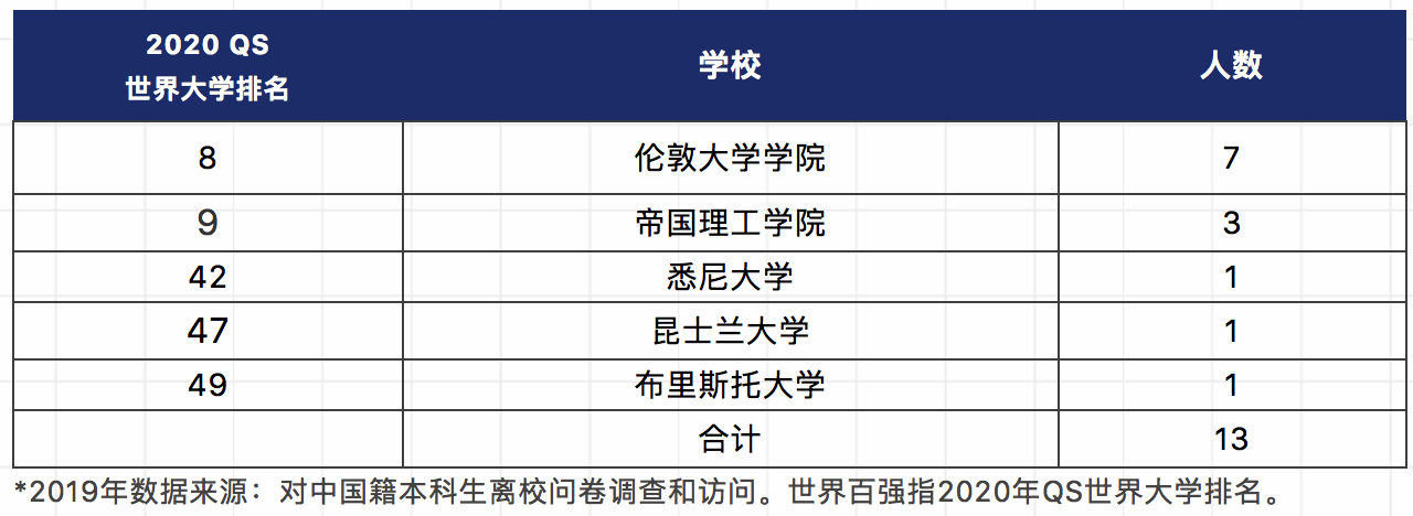 根据2019最新统计数据,选择继续升学的本科毕业生中有42.3%被QS世界排名前10的大学录取,研究生就业率达到了100%。