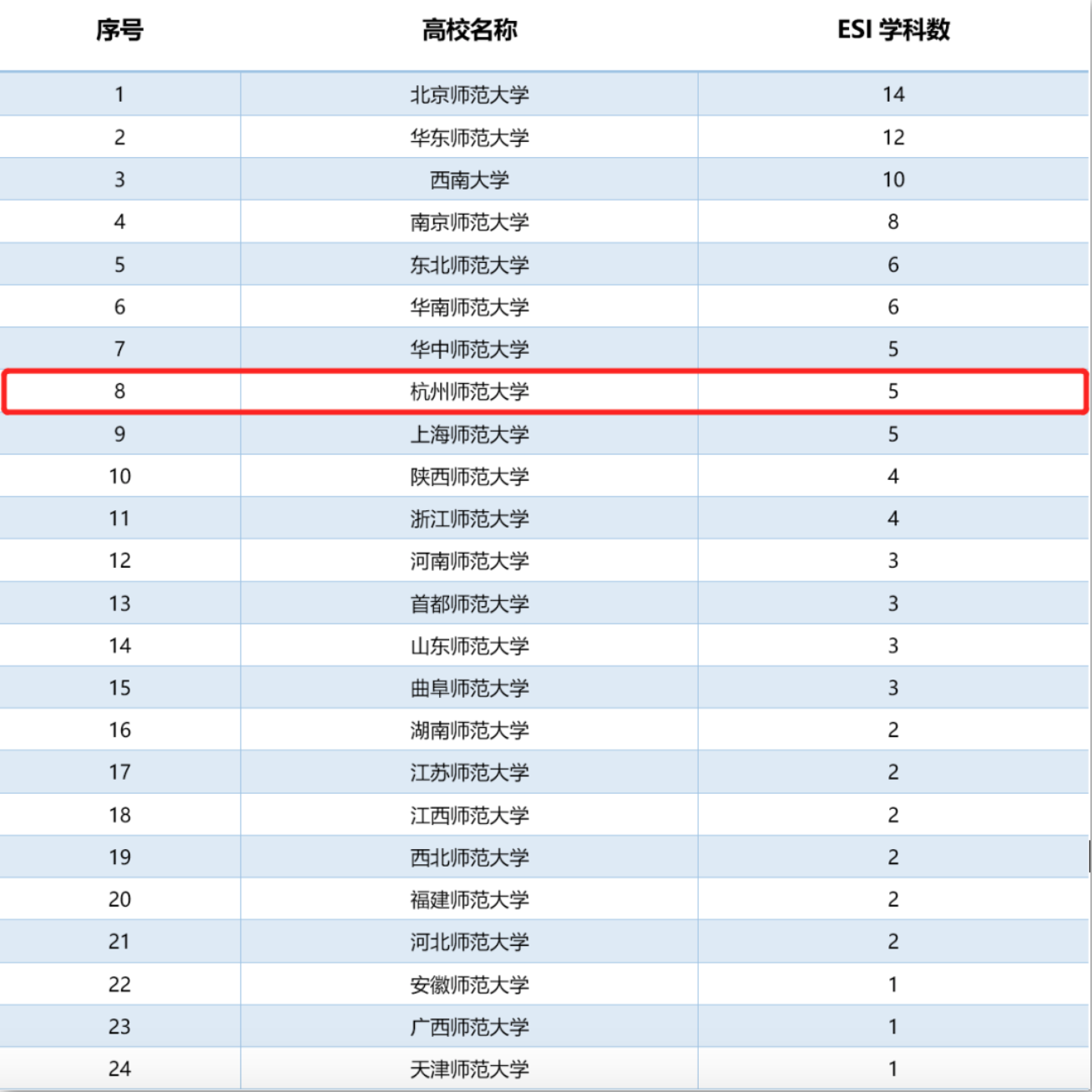 最新师范高校ESI学科数