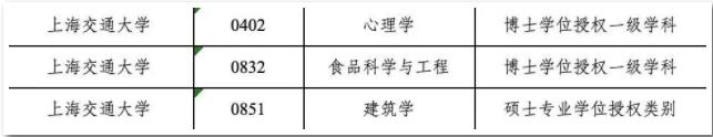 交大作为全国首批学位授权自主审核高校,增列3个学位授权点:心理学博士学位授权一级学科、食品科学与工程博士学位授权一级学科、建筑学硕士专业学位授权类别。