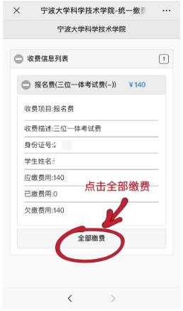 我院2020年“三位一体”综合评价招生考试为网上缴费,缴费时间为6月16日10:00-6月29日15:00。缴费流程如下: