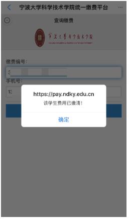 温馨提示:缴费成功用再扫码会显示该学生费用已缴清