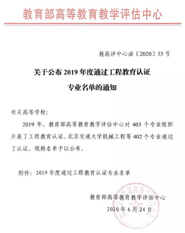 近日,教育部高等教育教学评估中心、中国工程教育专业认证协会正式发布《关于公布2019年度通过工程教育认证专业名单的通知》和《关于公布北京交通大学机械工程等402个专业认证结论的通知》,公布了2019年度通过工程教育认证专业名单。浙江海洋大学机械设计制造及其自动化专业顺利通过工程教育专业认证,有效期6年(2020年1月至2025年12月)。这是我校第二个通过中国工程教育认证的工科专业,也是浙江海洋大学第一次党代会明确的专业建设目标和学校“十三五”规划的重要支撑数据。