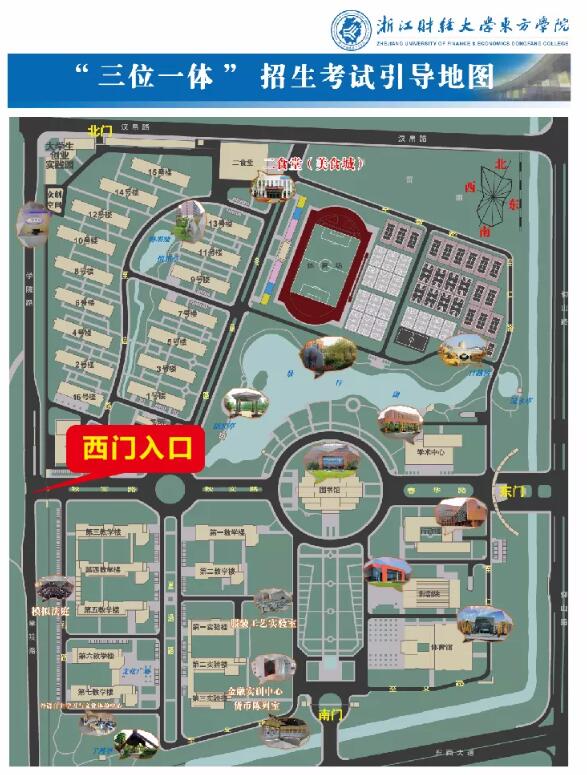注:综合测试仅西门开放作为考生报到通道,学院其余大门由于疫情防控要求,暂不对考生开放。