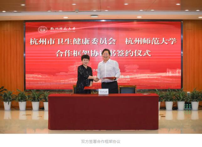 杭州市副市长陈卫强、杭州师范大学校长尚永丰院士出席活动并讲话。杭州市卫健委党委书记、主任孙雍容和尚永丰分别代表双方签署合作框架协议。杭州市卫健委党委副书记、副主任楼建忠主持仪式。与会领导嘉宾共同见证签约。
