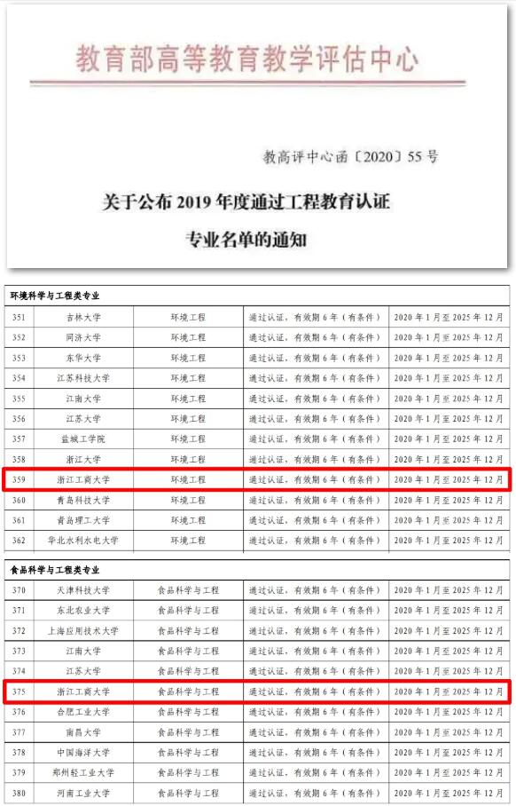 喜讯 | 浙江工商大学这两个专业通过工程教育认证