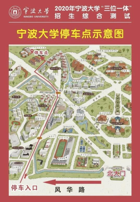 step 1考生一律从宁波大学本部北大门进校,自驾车辆的考生即停即走,除考生外,其他人员不得进校。