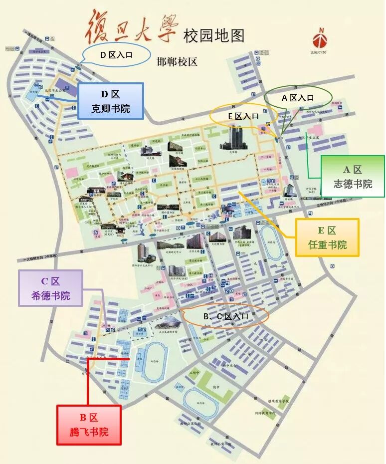 入校后可通过地图和各区域内书院标志色寻找报到点