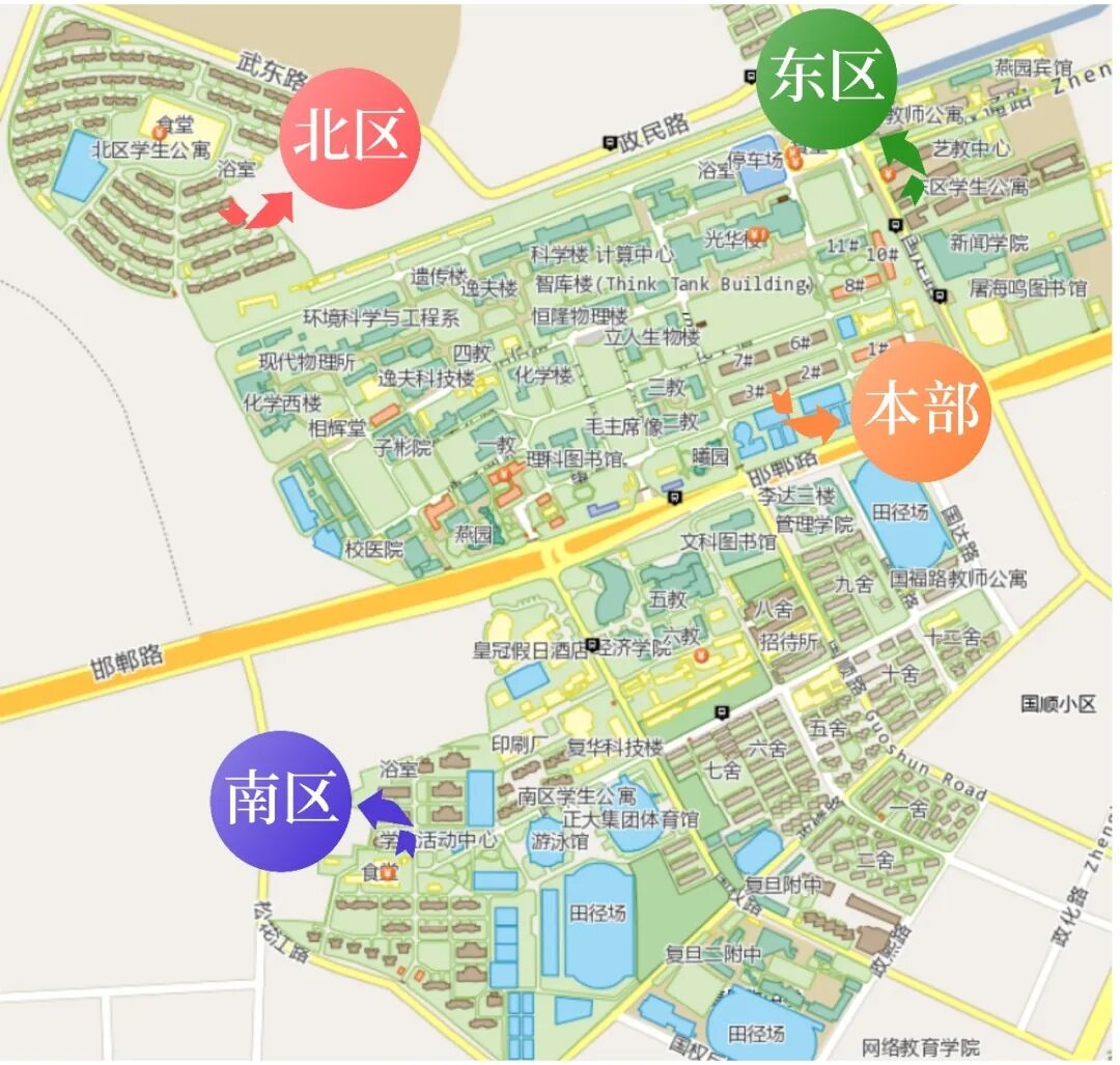 今年的本科小萌新们住宿区域覆盖本部、南区、东区和北区等多个区域,以下为不同区域指示图: