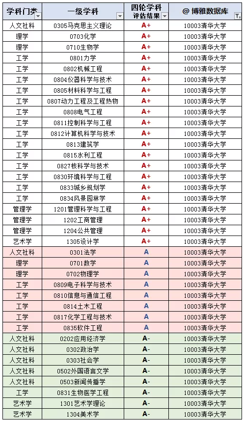 A类学科共计47个: