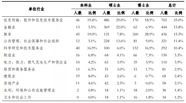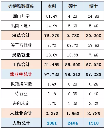 本科、硕士和博士毕业生就业率分别为 97.7%,98.3%和 97.2%。