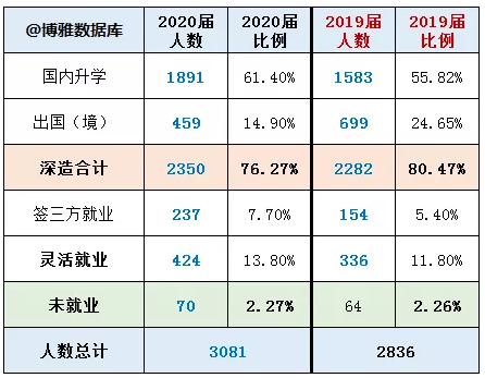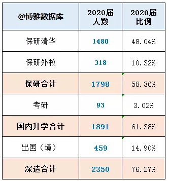 ·国内升学人数、比例,较上届明显增加。主要是保研留本校大增。