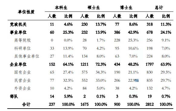 签三方就业协议的毕业生2812人去向如下: