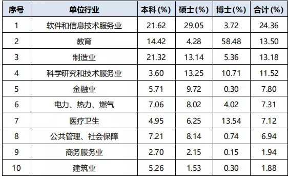 硕士流向IT业、科学研究和技术服务业、制造业。