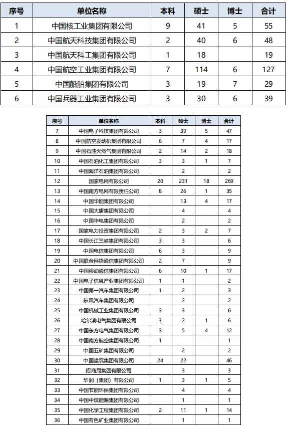 ②到国资委直属大型央企、重要科研机构及战略支援部队等就业的人数为 1069 人,占签约就业人数的 22.85%。
