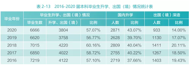 ·受中美经贸摩擦、新冠疫情等影响,近年来我校本科生出国深造人数下降趋势明显,转而选择考研或继续等待留学的人数逐年增加。随着国内考研"热"度攀升,我校选择"二战"等暂不就业的本科生超过10%。本科生就业意愿持续下降,选择"慢就业"和"不就业"学生越来越多,加上考研成功率偏低,出国困难,我校本科毕业生就业率提升难度较大,对整体就业率影响明显。