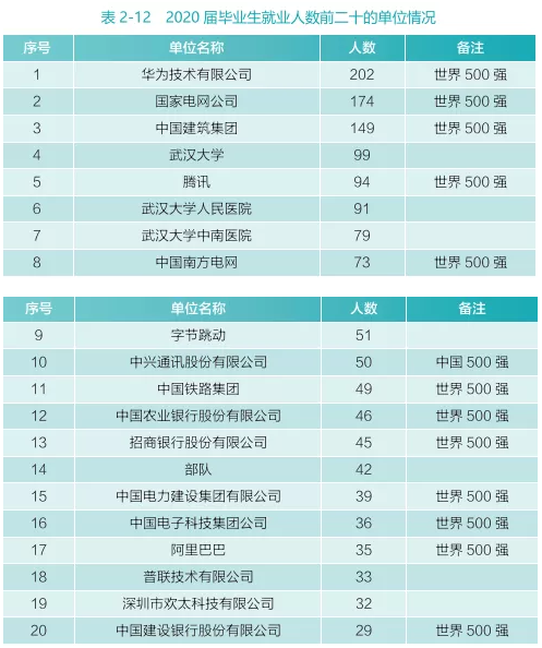 近日,武汉大学分别2020届毕业生就业质量报告: