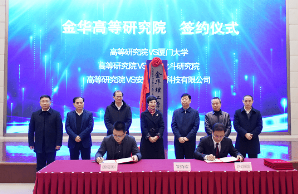 仪式上还对新成立的金华高等研究院进行了授牌。研究院作为未来金华理工学院的母体,将解决零基础筹建金华理工学院这一瓶颈问题,通过研究院汇聚国内外高水平创新人才、推进新型研发机构建设、促进政用产学研训协同发展,为金华理工学院内涵建设打好基础。现场,金华高等研究院院长赵海均分别与厦门大学、北航金华北斗研究院、杭州安恒信息技术股份有限公司负责人签订了战略合作协议。