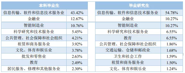 浙江省内就业的毕业生主要流向了杭州市(77.89%)和宁波市 (7.23%);其中,本科毕业生和毕业研究生流向杭州市分别为75.95%和 81.61%。