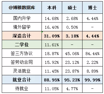 协议就业、合同就业均减少,导致就业率较上届降低。